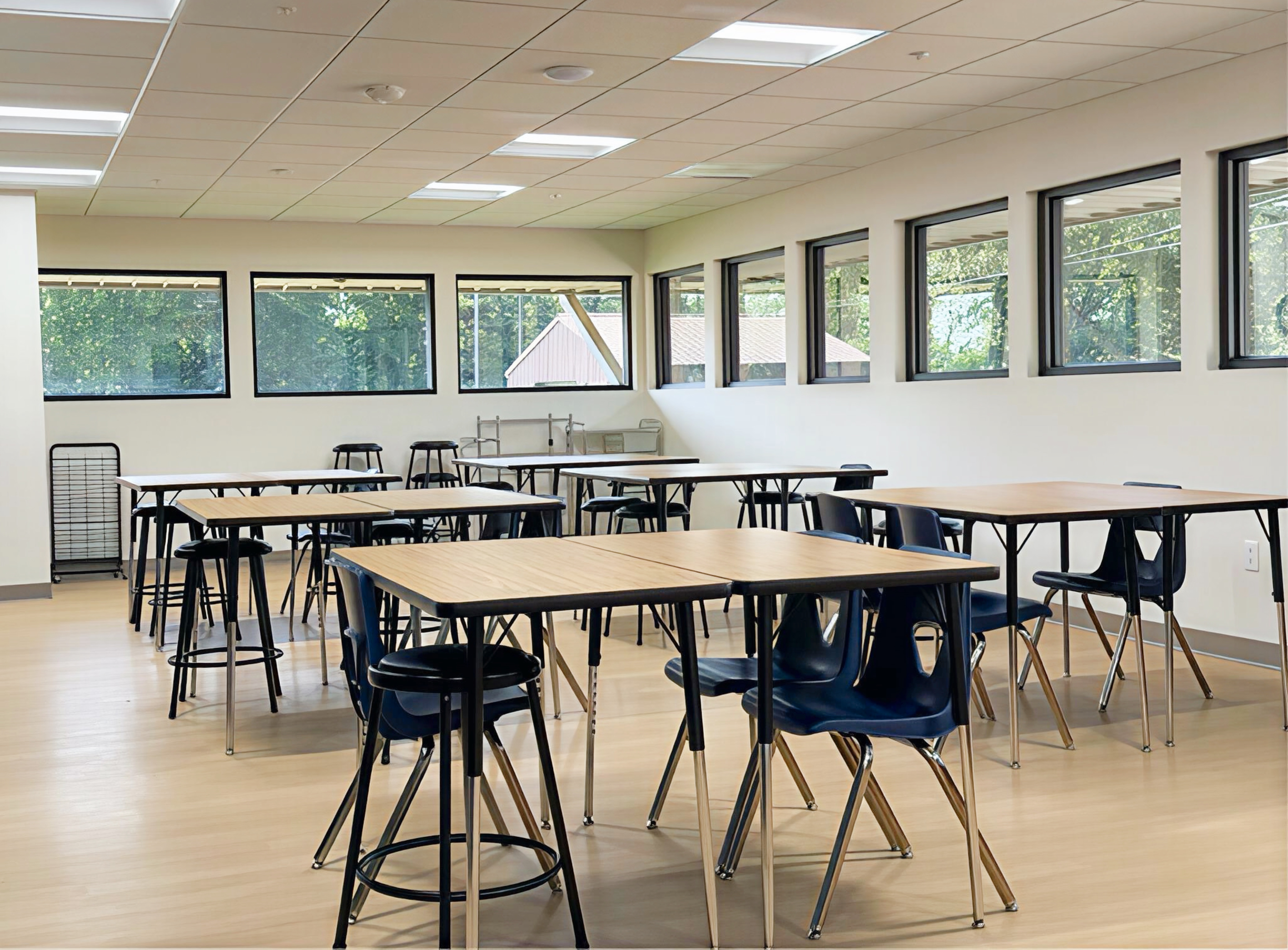 The project was carefuly coordinated to allow First Christian Church to meet on Sundays while the work was progressing. Overall, both the school and the church were happy with the finished space, which was completed in 2025.
